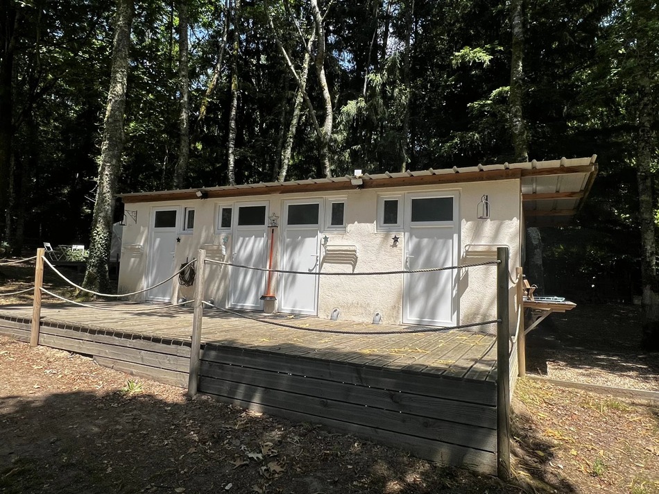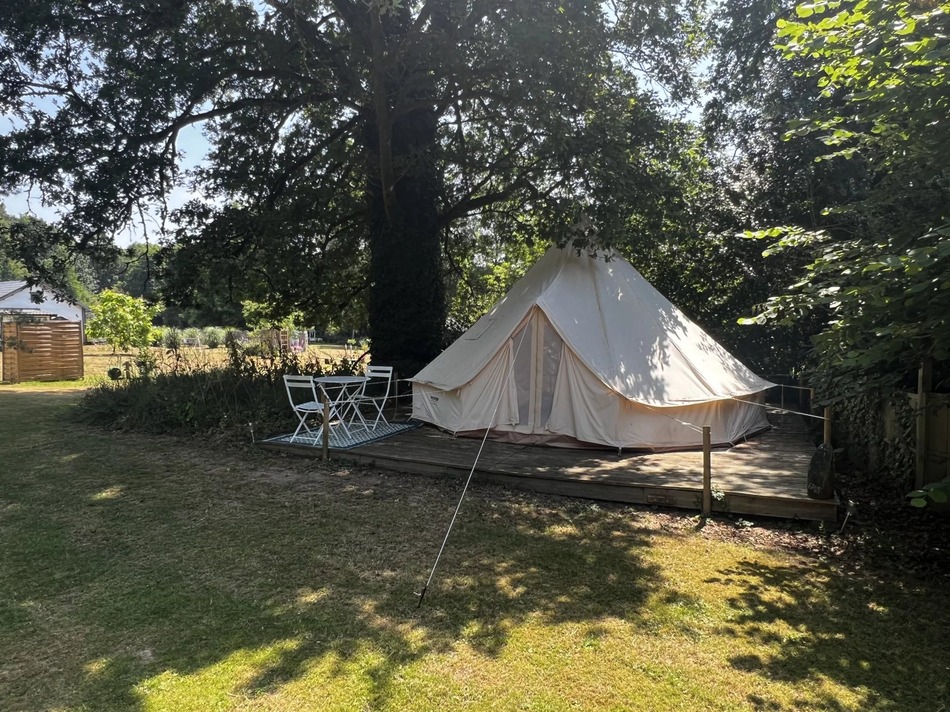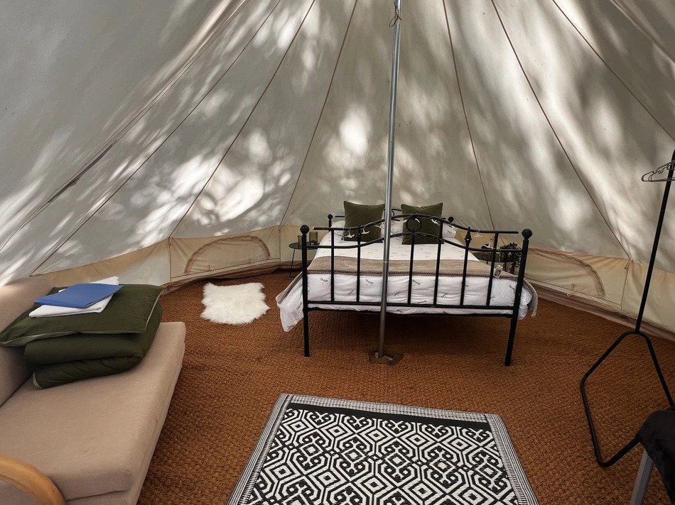There are bases for four large bell tents (these need purchasing, price reflected for this), each sleeping up to 4 people, each with a terrace, secluded areas and private WC and shower facilities. Each tent is currently rented for 80 euros per night.