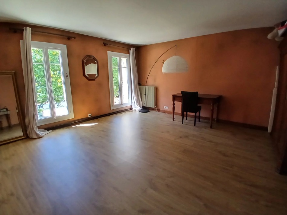 The grand 51m² living/dining room looks out onto the terrace, the heated swimming pool and the surrounding private grounds. It has a large fireplace and area for entertaining. with its own little bar. Adjoining the living space is a spacious, light filled, kitchen, which has room for a dining area and which also opens out onto the terrace. There is a bedroom with en suite shower room and WC on the first floor, which, if desired, could be used as a guest annexe or, as has been previously, used as a chambre d'hotes (subject to necessary permissions).