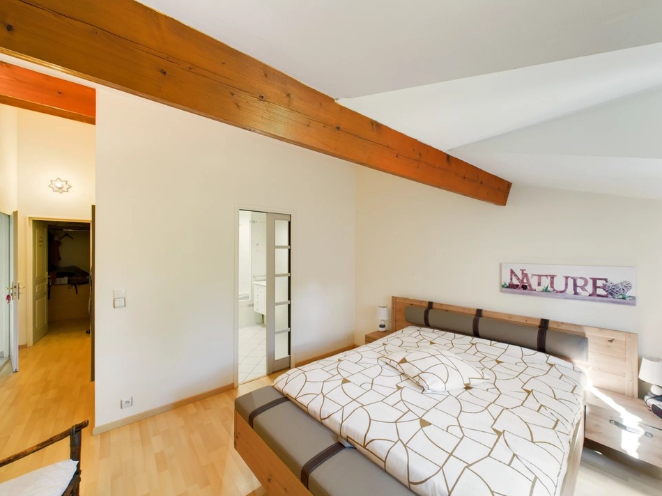 The property has 5 bedrooms, 2 of which are en suite. Having one en suite bedroom on the ground floor adds practicality to this family house. There is a large conservatory with a pellet burner making a useful and light filled additional room which be used in the wintertime too.
