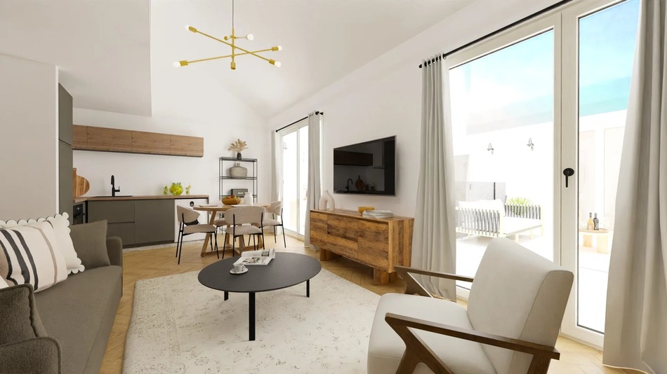 On the ground floor, entrance hall, living room, kitchen, dining room opening onto a 25 m² terrace.
