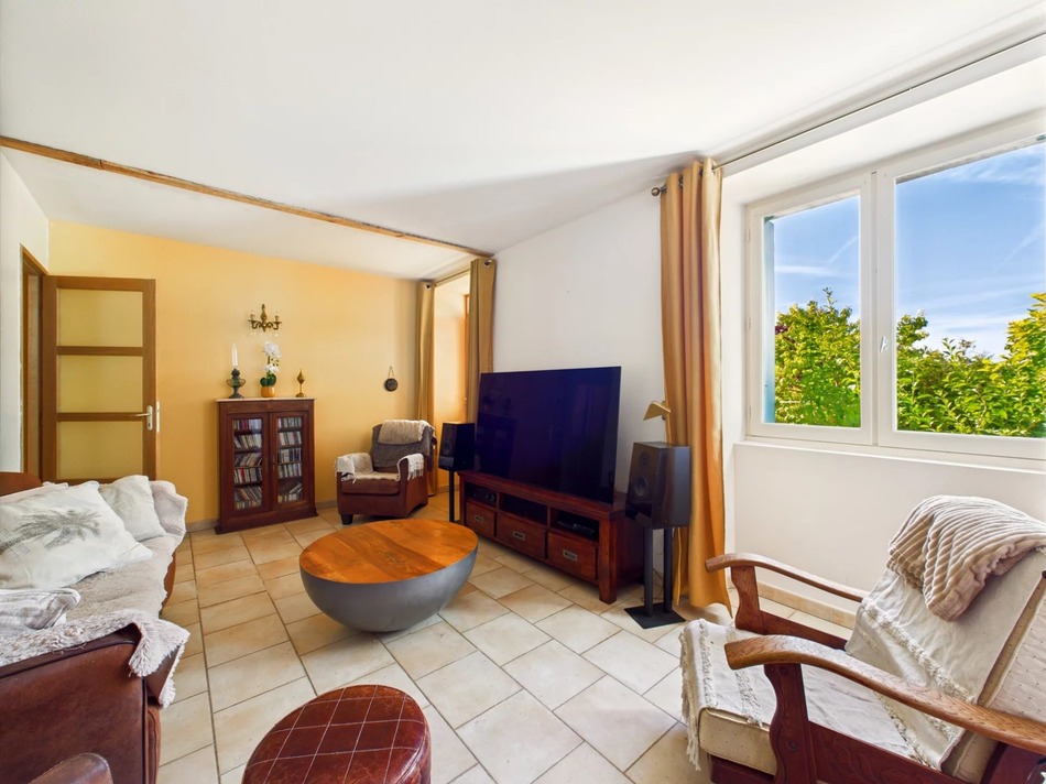 The ground floor comprises of spacious kitchen-dining, with utility space, and access to the large barn, enjoyed as an entertainement area with workshop, living room, shower room and wc. The first floor offers four double bedrooms, study/dressing room, all of which profit from lovely views over the grounds, plus shower room with wc.