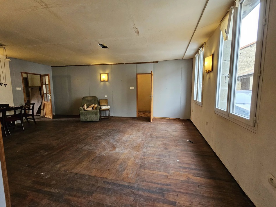 Outside, the property benefits from an enclosed rear garden, a large garage with partially renovated accommodation above, and a separate cave with external access, perfect for storage. A wood burner with a back boiler has been installed (not yet connected), offering the potential for a cosy and efficient heating system once completed.