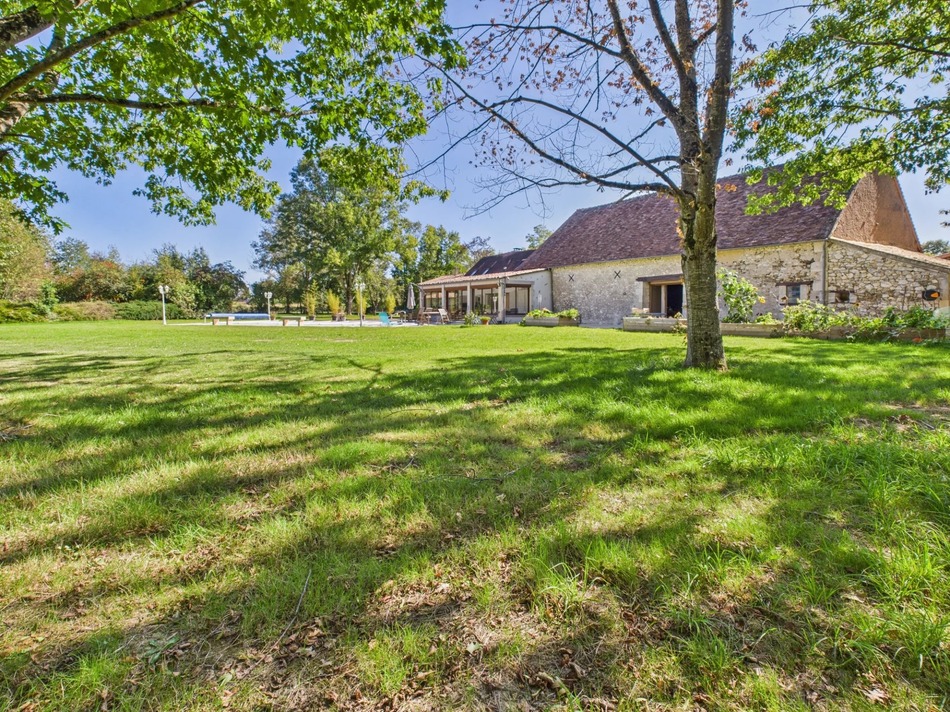 At the rear, the generously sized swimming pool enjoys complete privacy and offers a soothing view of the surrounding countryside. The garden, surrounded by meadows, is perfect for keeping horses. A well on the property also reduces maintenance costs.