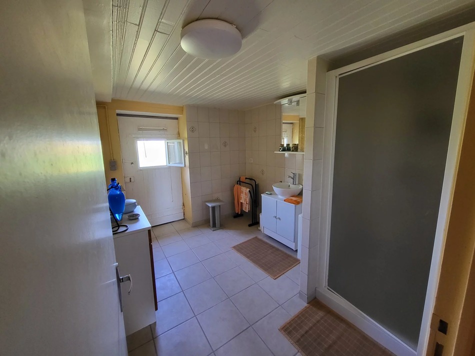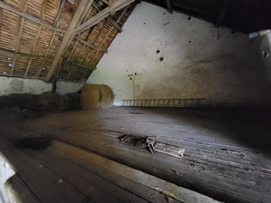 Current accommdation is all on the ground floor, But a large attic (approx 70m2) above offers the potential to double the living area. One enters the property directly into a kitchen/diner with bedrooms off to either side. A passage from one of them leads to a storage room and bathroom at the back of the property.