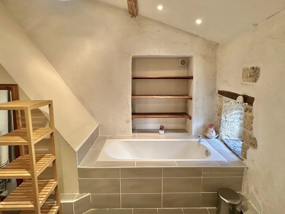 This charming character home combines traditional appeal with modern comfort and a warm, welcoming atmosphere. The main living area is bright and spacious, featuring exposed stone walls and wooden beams, blending authenticity with everyday comfort. Perfect for family life or entertaining, the room includes a wood-burning stove, ideal for cosy winter evenings.