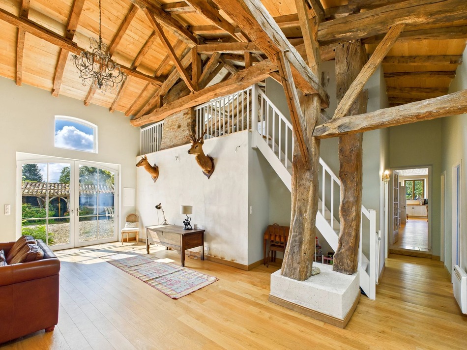 The outdoors are equally enchanting: over 7000m² of landscaped grounds with mature trees host an elegant swimming pool and a covered summer kitchen, ideal for long sun-filled days and convivial evenings.