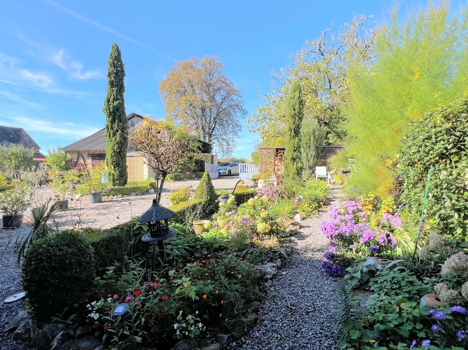 The generous plot of over 8000 m² includes a pleasant garden and a large adjoining field, with plenty of space for a vegetable garden, orchard, animals, or simply to enjoy the peace and open countryside.