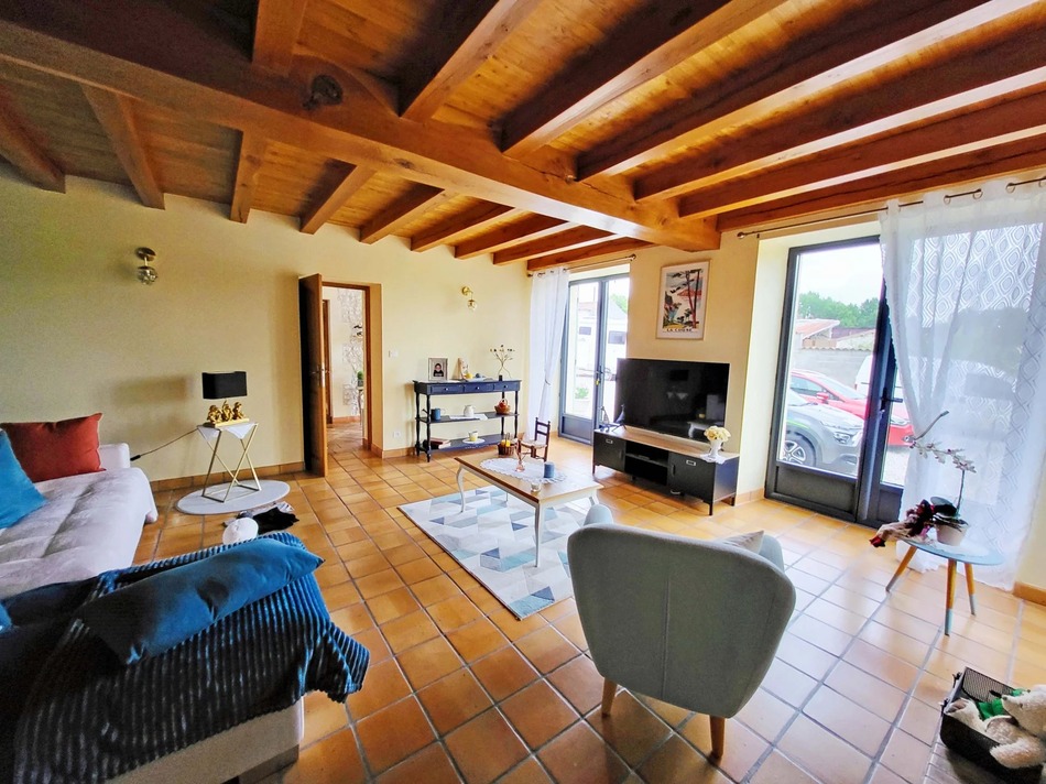 Set in a pretty village, just 15 minutes south of Cognac and an hour from Royan and the glorious beaches of the west coast, this spacious property with heated pool, extensive garage/workshop space and almost 3000m² of land, is in good condition throughout.