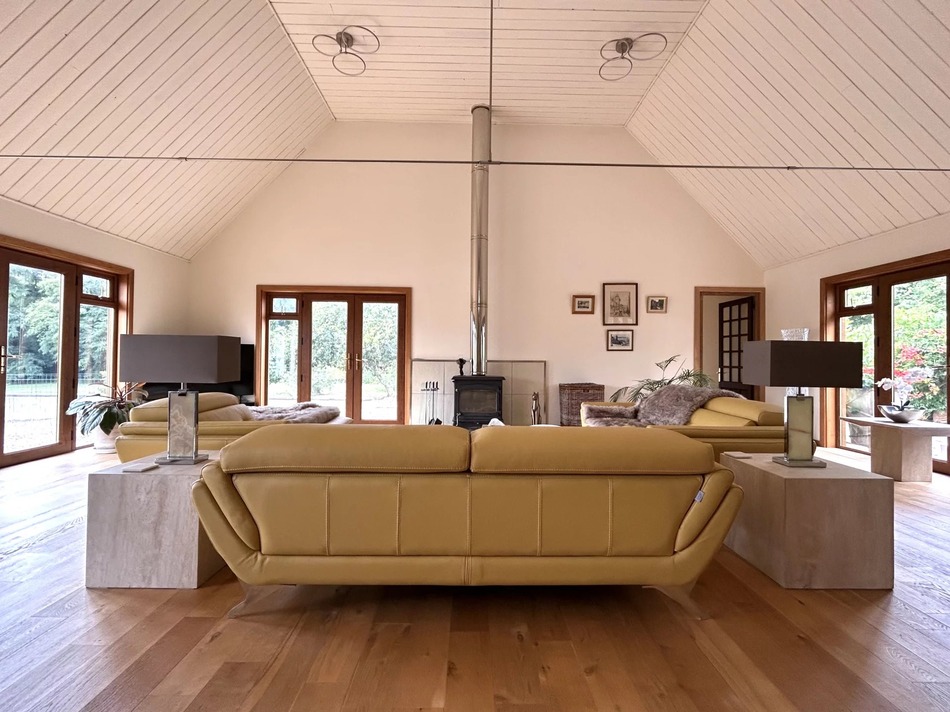 Step inside through the sun-filled conservatory and be welcomed into the breathtaking 85 m² open-plan living, dining, and kitchen area. With its vaulted ceiling, this space is designed for both style and comfort. Overlooking it from above, the mezzanine cinema and TV room provides a stunning bird’s-eye view of the heart of the home.