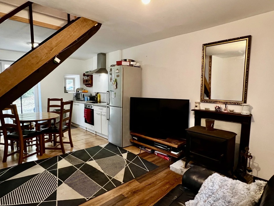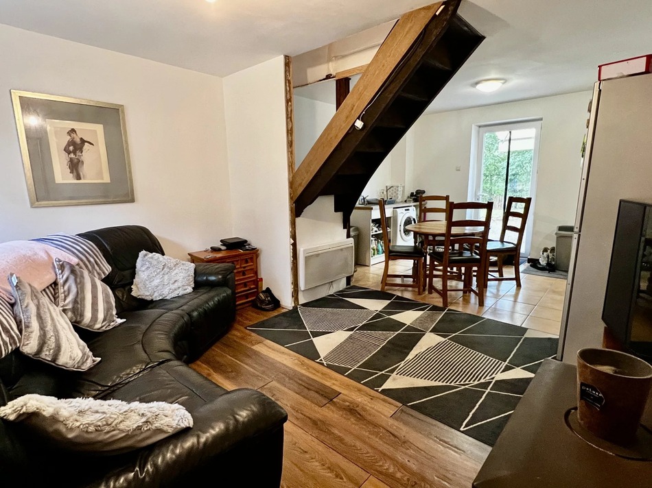 The first house is already renovated and move-in ready, with double glazing throughout. On the ground floor, you’ll find a bright living and cooking area with wood burning stove, while the first floor offers a large bedroom and a shower room with WC. A spacious attic provides further potential for conversion if desired (subject to permissions )