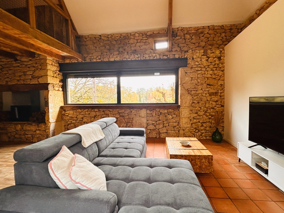 A beautifully-renovated stone house for sale on the Dordogne–Lot border, ideal for anyone dreaming of a relaxed French lifestyle. This 4-bedroom home has been finished to a high standard and offers modern comfort throughout. The large open kitchen, dining and sitting room has a vaulted ceiling that gives a wonderful sense of space, and the fireplace with insert woodburner is perfect for winter evenings.