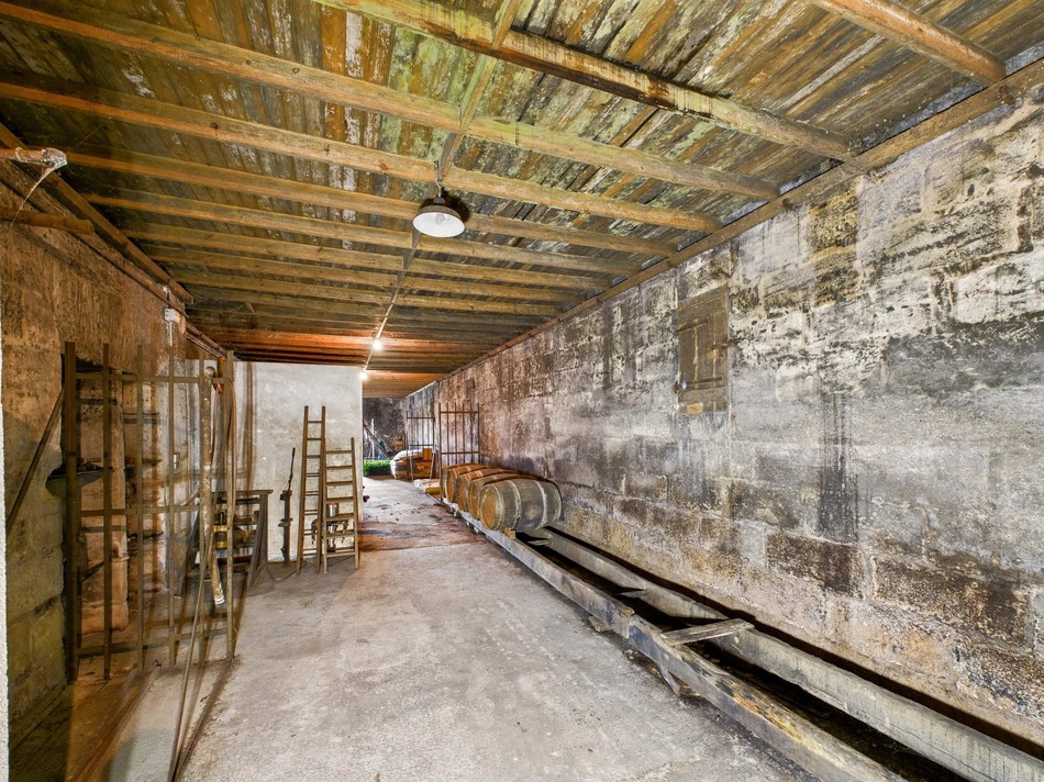 At the centre of the property stands a traditional stone house with six bedrooms and generous living spaces, awaiting sympathetic renovation. Full of authentic Girondine charm, it retains its original fireplaces, old beams and period details, offering the perfect canvas for a restoration that could blend heritage with comfort.
