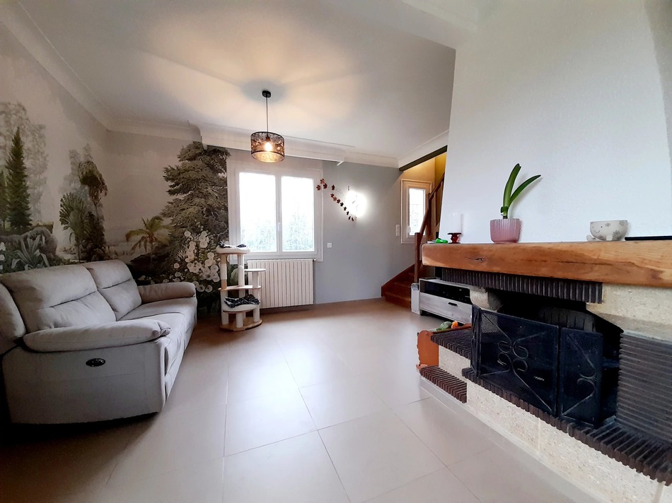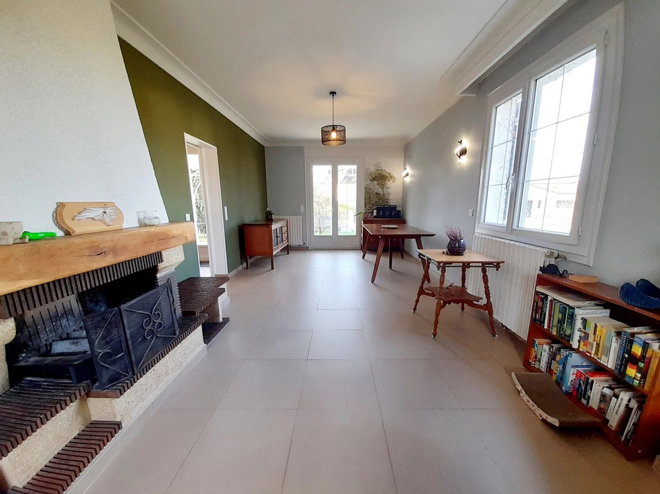 The rez-de-chaussée level (ground floor) has an equipped kitchen with an attached breakfast table and access to a beautiful and original, glazed covered patio. A custom-made sliding door in the kitchen leads into a large, bright, dining-living room with French doors to the front and a cozy fireplace. A superb social space to gather family and friends, from here follow the hallway to the premier bedroom which has a solid oak parquet floor, fitted wardrobes and doors to the covered patio, situated next to this is a large bathroom with a jacuzzi style bathtub, shower and double sinks and a separate toilet and laundry room.