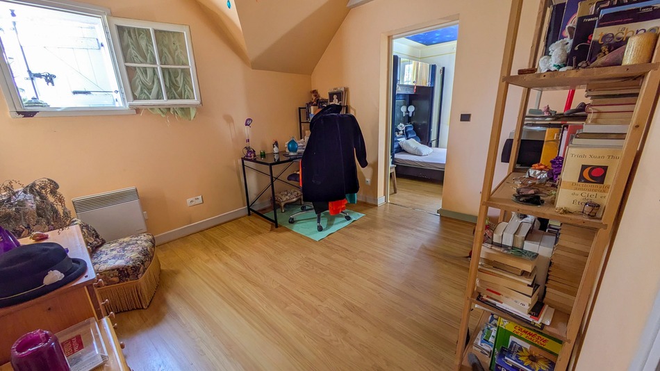 The house provides spacious and flexible accommodation, including a ground-floor bedroom and bathroom. A bright home office with fitted bookshelves and a balcony overlooking the garden is perfect for remote working. The large living room opens onto a conservatory, creating an inviting living and entertaining space. Upstairs, the well-proportioned bedrooms are complemented by ample storage throughout.
