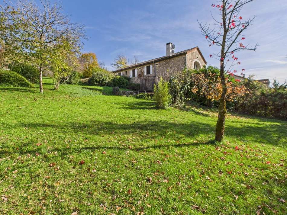Wonderful views from this 3 bedroomed, stone property set in 1,1 hectares of land and within walking distance of a lively village with amenities, close to the river Lot.