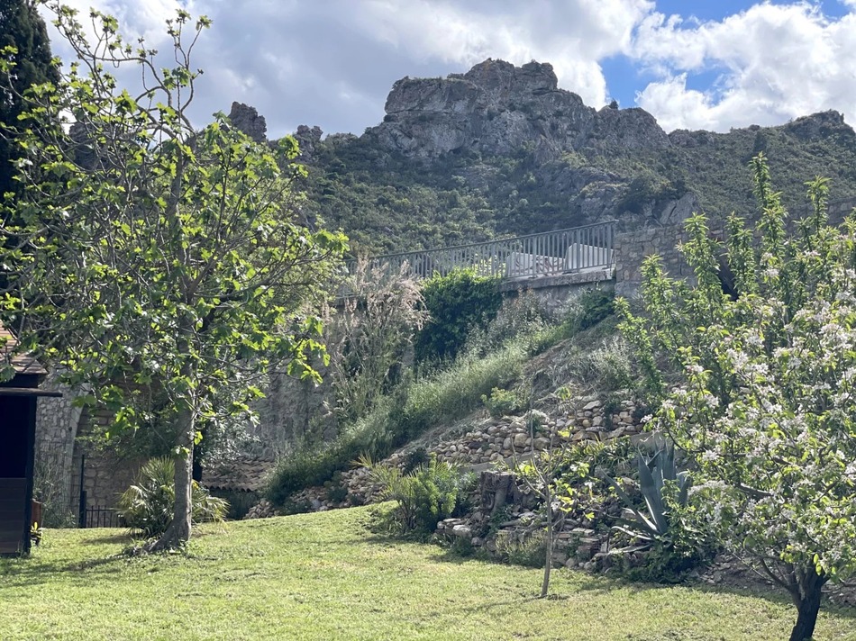 A main house with spacious living areas, four bedrooms and a rooftop terrace overlooking the Corbières gorge.