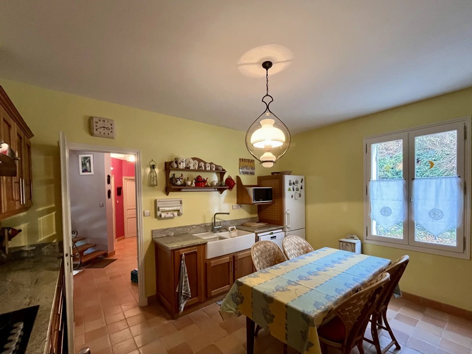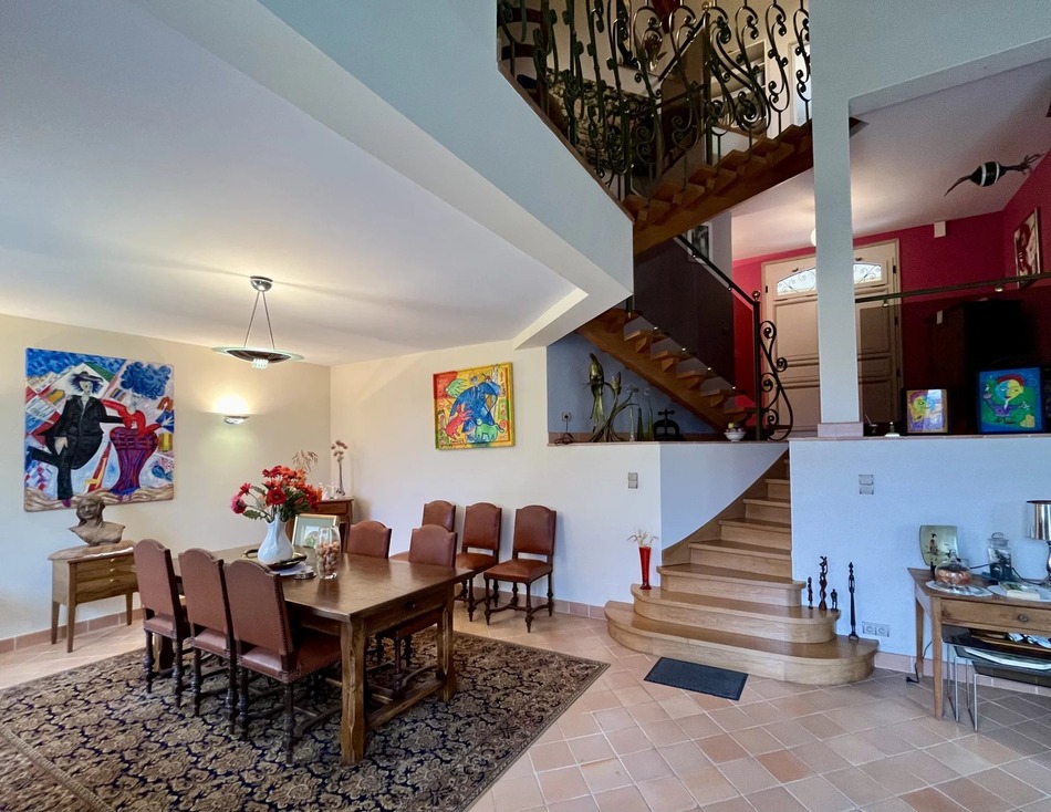 As soon as you enter, the majestic hall sets the tone: generous volumes, controlled lighting and a staircase enhanced by a forged iron banister, a true piece of craftsmanship that makes this space an architectural highlight. The fitted kitchen opens onto the outside, offering optimal comfort for everyday living. A laundry room, bathroom and separate WC complete the ground floor, which benefits from underfloor heating for unrivalled comfort.