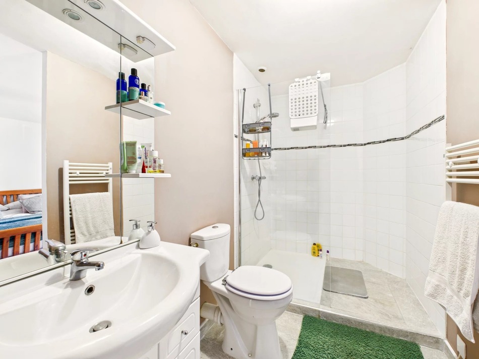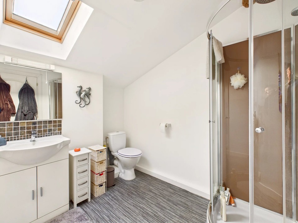 A large multifunctional room on the ground floor is currently used as a laundry and craft room, though it would also make an excellent home gym or studio. Upstairs are three additional bedrooms, one of which is currently arranged as a sewing room but would work equally well as a guest room or home office. A stylish family bathroom with shower completes the first floor.