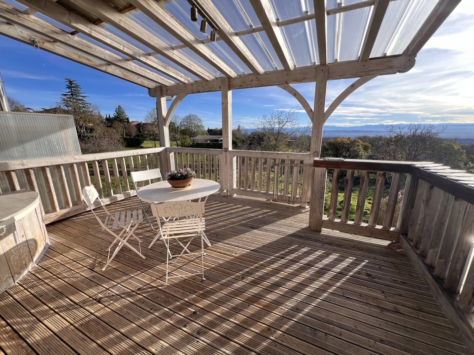 EXCLUSIVE TO ! Set in a lively hamlet near the creative village of Montolieu, this beautifully designed eco-home blends contemporary wooden construction with the charm of ancient stone. Facing south, it is bathed in natural light and enjoys a sweeping panorama over open countryside and the distant Pyrenees — a setting that feels like a private haven.