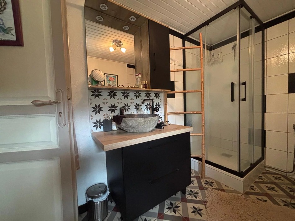 Situated on a small country lane, with no passing traffic, the main house comprises a spacious living room with exposed beams, a wood-burning stove and large stone fireplace, opening onto a very-well-equipped, modern kitchen. A light and bright extension constructed in 2021 is currently used as a dining room but could be a second living room leading to an adjoining a bedroom (with plumbing in place for another shower room) on the ground floor. A laundry / utility room room completes the ground floor. Stairs lead to a landing and main bedroom with lots of cupboard space, a fully renovated shower room with WC.