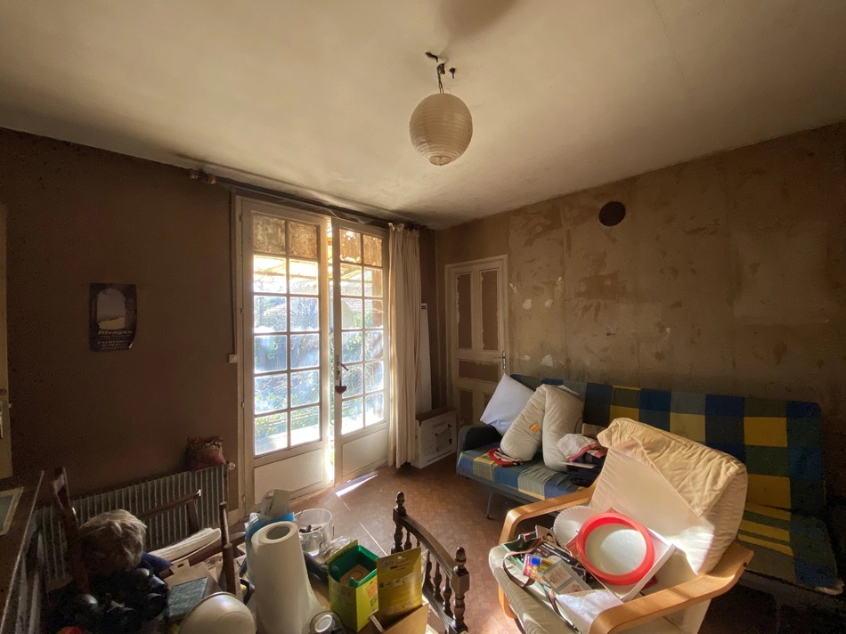 Behind a discreet street-side façade lies a house to renovate with a rear garden and a large barn.