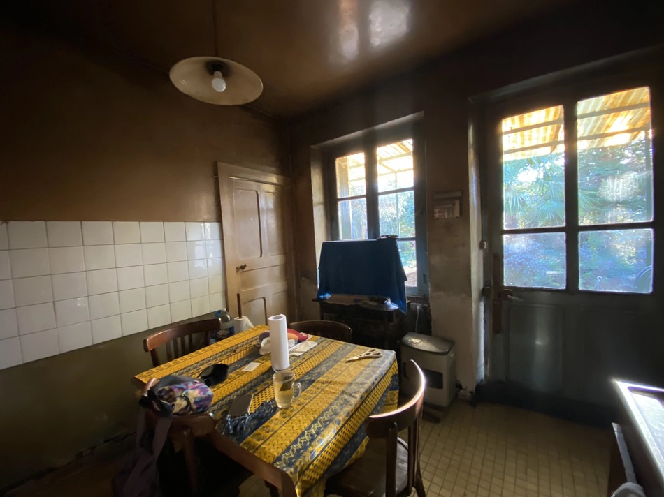 The main house is partially raised above a cellar/garage. On one level is a kitchen, a living room and three rooms, one of which has a WC. In the basement, accessible from the street or the terrace, there is a room and a shower room. This space, formerly used as a shop, could be used for storage or as a workshop.