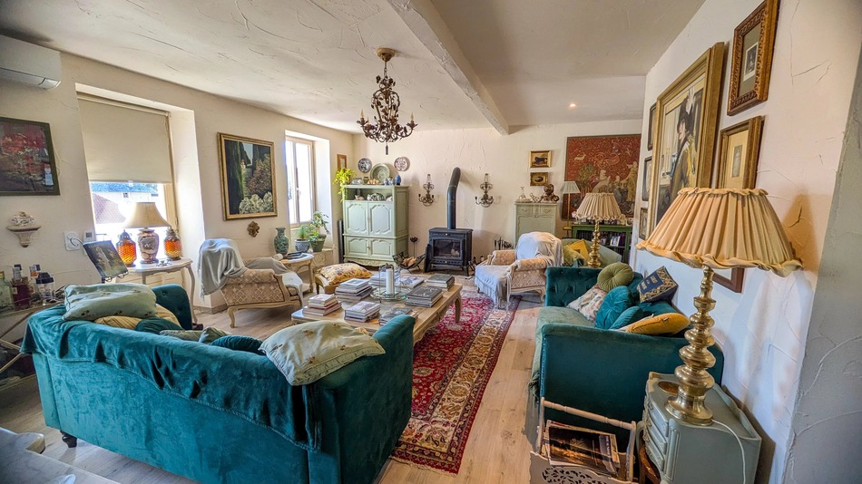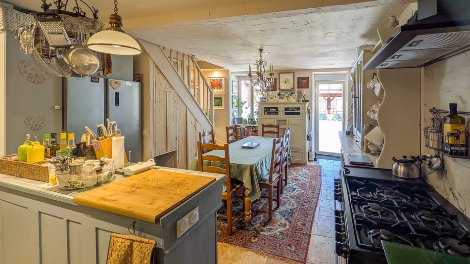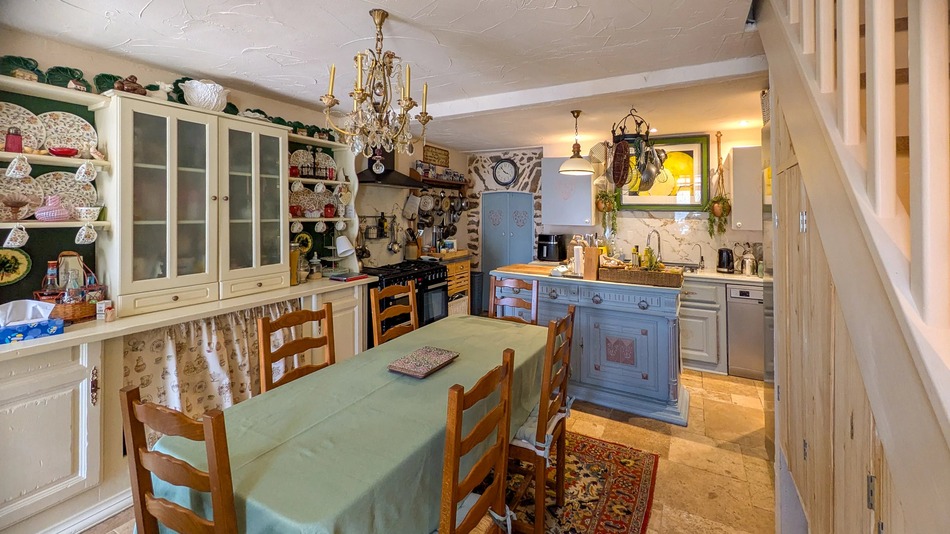 The kitchen–diner opens onto a large covered terrace overlooking a private, secure garden. Positioned on the edge of the small village, the house enjoys a peaceful setting and benefits from off-road parking and a garage.
