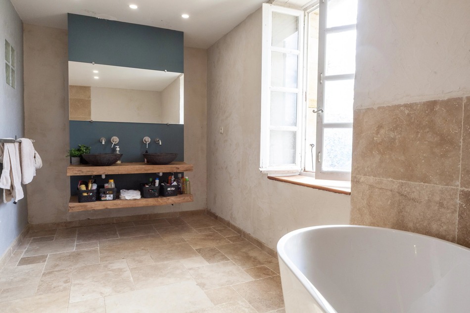 Nearby, but with a separate entrance, is a second, more contemporary home (possible gite - subject to necessary permissions). It features a large kitchen opening onto the second pool area, offering superb views of the countryside. On the ground floor, there are also 2 bedrooms, 2 bathrooms, an office, a seperate toilet, and a laundry room. Upstairs, there is a lovely and cosy living room with exposed beams.