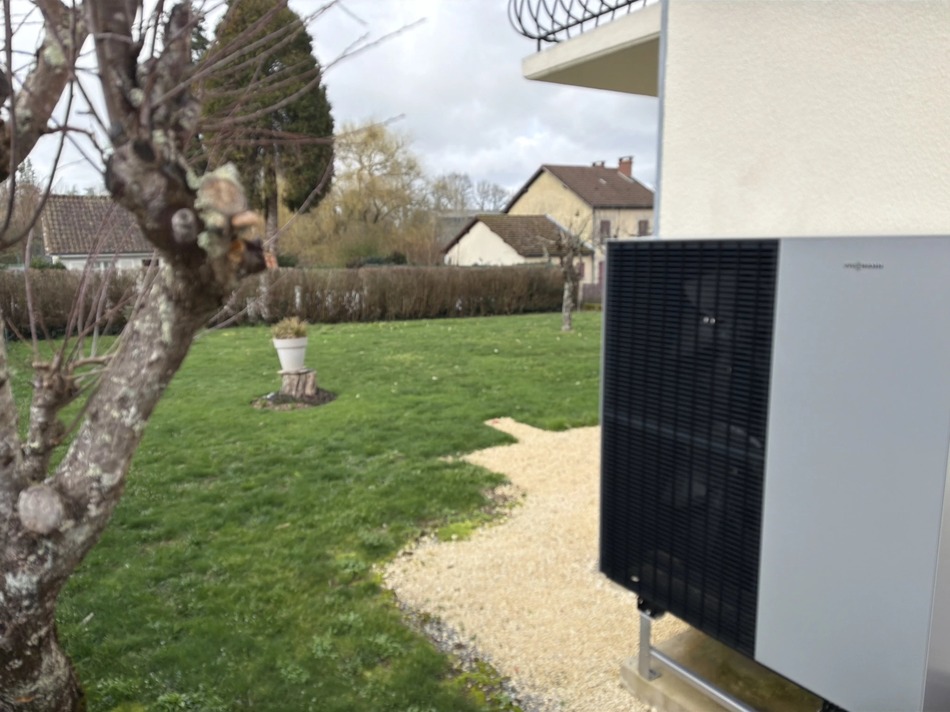 Having a B rated DPE, this house is renovated to include a heat pump heating system, modern double glazed windows plus solar panels which cover most of the electric bills and the house is on the mains drainage.