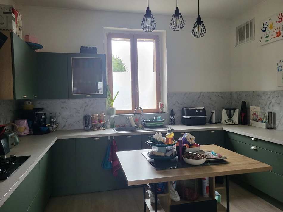 On entering, you are welcomed into a generous multi-purpose family living space currently arranged as dining area, playroom and informal sitting room. A wood-burning stove in the corner creates a warm and inviting focal point — perfect for cosy winter evenings.