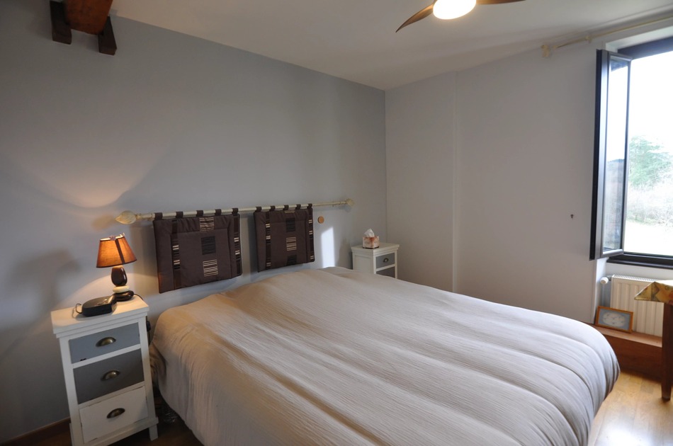 It comprises a separate kitchen, a very large dining/living room with high ceilings, and a small ground-floor flat. Upstairs, a large landing leads to three bedrooms and a shower room, as well as another area comprising three children’s bedrooms under the eaves, a dressing room, a shower room and a WC (finishing work required). The house has been modernised in recent years.