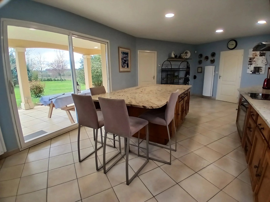 In the calm of the charentaise countryside you will find this beautiful, traditionally styled, 4 bedroom house offering you all the comforts of modern living with a great energy rating. Light and airy living spaces include a 40m² open plan, living-dining area, a modern fully equipped kitchen with central island (30m²),augmented by a large pantry. The exquisite principal suite, with its bathroom and dressing room, also located on the ground floor, has double doors which open to the stunning heated pool, terrace and gardens. Further on this level there is an office, laundry room, storage room and a WC. The first floor has 3 good sized bedrooms, a shower room and separate WC.