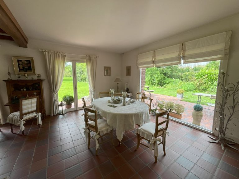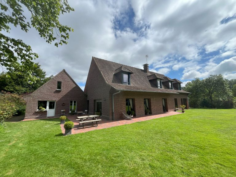 Ref 4436 : Superbe maison d'architecte de bon standing située dans un village de la vallée de la Canche entre Hesdin, Frévent et Saint Pol sur Ternoise. L'habitation comprend : Hall d'entrée, séjour double spacieux et lumineux (55m2) avec cheminée insert, grande cuisine équipée (15m2), arrière cuisine, grande suite parentale comprenant dressing, salle de bains (baignoire, douche, double vasque et placards), chambre avec porte fenêtre , bureau , wc, buanderie et laverie. A l'étage : palier desservant 3 belles chambres mansardées, rangements, salle de bains, wc, grand grenier aménageable (68m2). En sous sol : cave et chaufferie (60m2). Double garage (42m2) attenant a la maison , atelier. La propriété se situe en retrait de la route, sans vis-à-vis sur une parcelle paysagée de 5648m2 . Double vitrage, pompe a chaleur eau/ eau , tout à l'égout.
