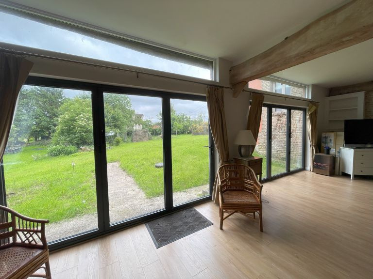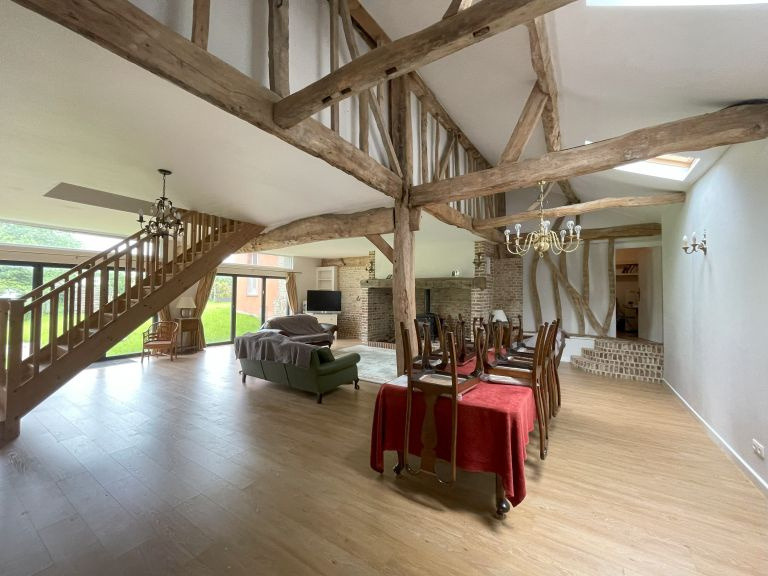 Réf 5024 : Belle maison d'architecte, d'environ 290 m2 habitable, pouvant être divisée en 2 maisons, sur un magnifique terrain de 5651 m2 avec étang, située dans un beau village de la vallée de l'Authie, comprenant :