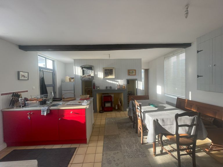 Cuisine aménagée, séjour-salon, couloir desservant 2 chambres, salle d'eau et wc.